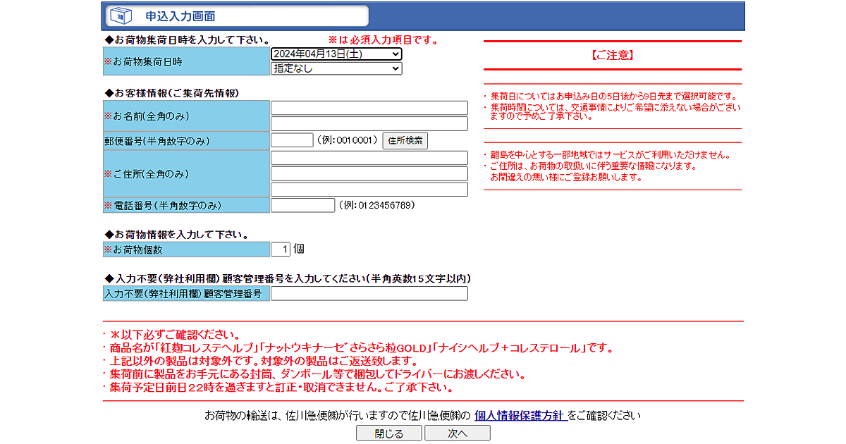 インターネットからの返品受付は、佐川急便が提供する回収サポートシステム「回収くん」を活用。「回収くん」は業務内容に応じた登録受付ページを簡単に作成し、「回収のみ」「同時交換」「発送のみ」の全輸送に対応できるシステムで、購入客が希望した荷物集荷日時に、佐川急便が直接集荷する。