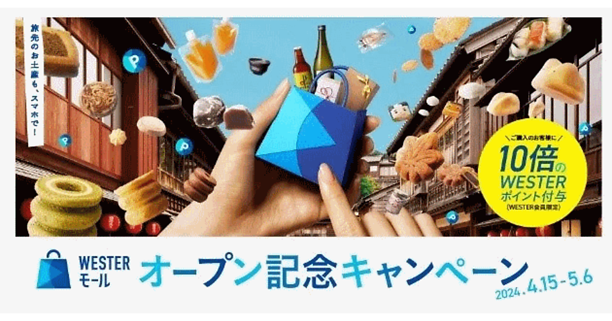 「WESTER モール」では土産品や食品、ギフト商品を中心に旅と買い物に関わる商品を販売する。西日本の土産品などをそろえることで、旅行前の土産検索ニーズに対応。消費者宅への直送による手ぶらでの帰宅、その後のリピート需要などを開拓する。
