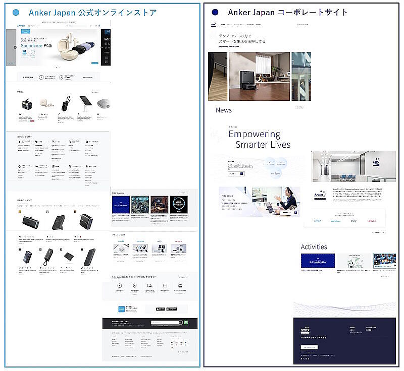 Ankerグループの日本法人Anker Japanは、コーポレートサイトと通販機能を持った公式サイトを、コーポレートサイトとECサイトに分割した。
