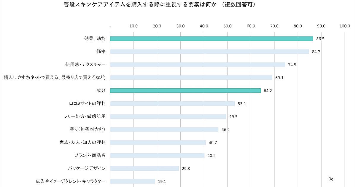 「効果・効能」「価格」「使用感」が重視される傾向
