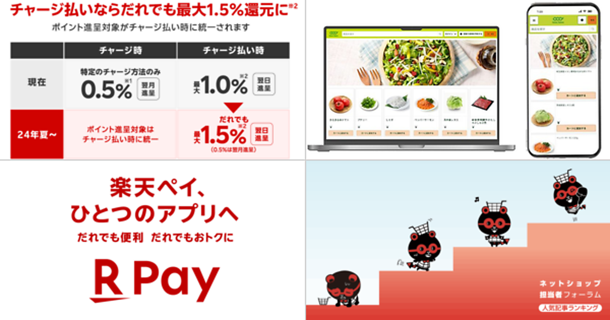 「楽天ペイ」アプリのポイント還元プログラムを刷新、「楽天キャッシュ」のチャージ払いで最大1.5%のポイントを進呈