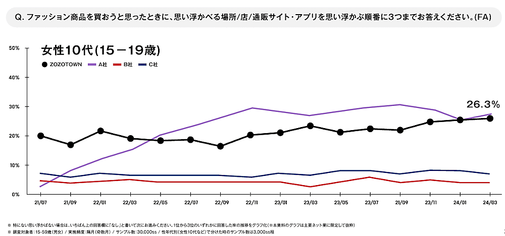 ZOZOのターゲット年齢は従来、18歳以上。近年は15歳以上まで引き下げるさまざまなプロモーションを実施していおり、若年層の認知拡大や新規顧客の獲得が進んでいるという。