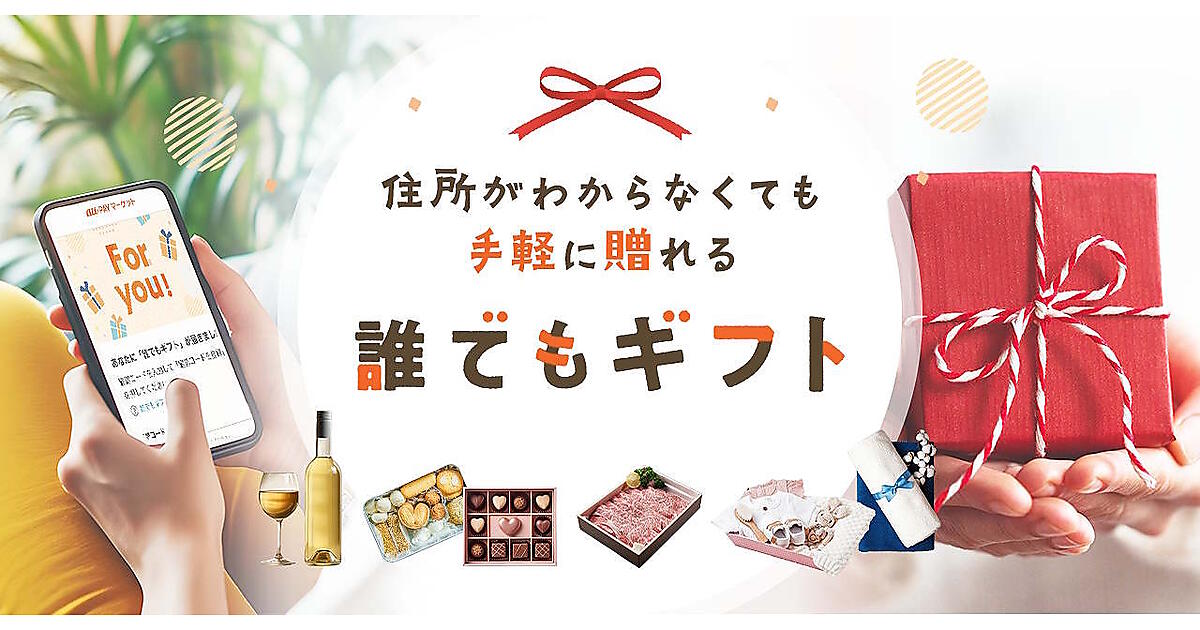 「誰でもギフト」は、ギフトを贈りたい人の住所や本名を知らなくてもオンライン上でギフトを贈れるギフトサービス。誕生日などの特別な日のほか、家族、友達、職場の同僚、SNSでの友達などに日々の感謝の気持ちを伝えるといったニーズを開拓していく。