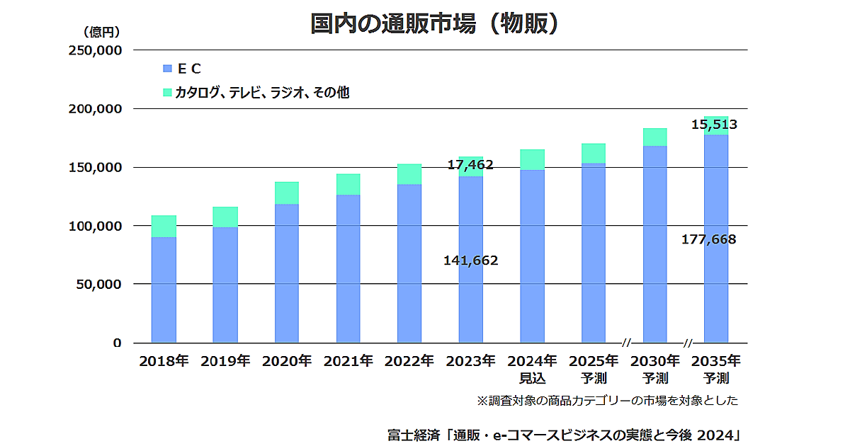 富士経済はECを中心に成長が予想される通販市場の最新動向を調査。その結果を「通販・e-コマースビジネスの実態と今後 2024」にまとめた