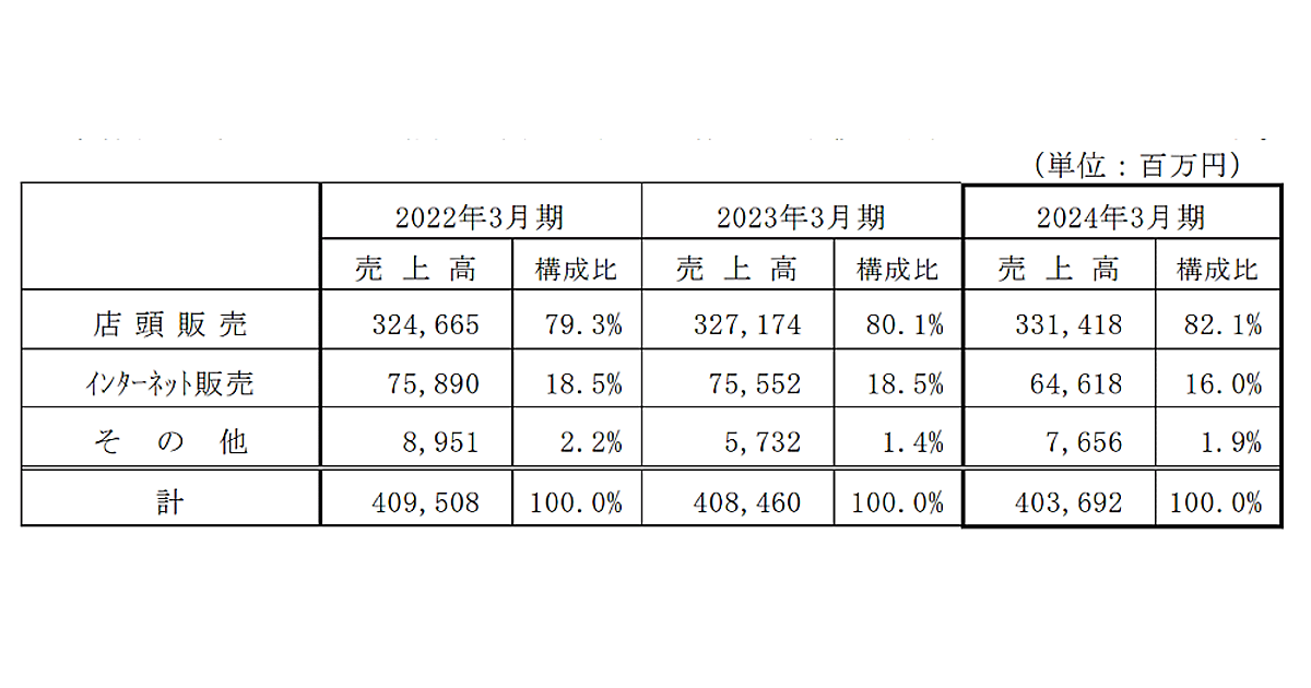 上新電機のEC売上は646億円で14.5%減、2期連続減収。EC化率は16%【2024年3月期】コロナ禍における需要の前倒しの反動、物価高に起因する消費の伸び悩み、行動制限緩和によるレジャー支出の増加などが影響していると見られる瀧川 正実2024年5月9日 8:30シェアポストはてブBluesky上新電機の2024年3月期連結業績によると、EC売上は前期比14.5%減の646億1800万円だった。減収は2期連続。連結売上高は同1.2%減の4036億9200万円。連結売上高に占めるネット販売の構成比を示すEC化率は16.0%。前期比では2.5ポイント減少した。 販売チャネル別の連結売上高(画像はIR資料から編集部がキャプチャ) 関連リンク上新電機 この記事のキーワード :#O2O#オムニチャネル#上新電機#業績運営 5,512オムニチャネル 1,281業界動向 9,520この記事をシェアしてほしいタヌ!ポストする>ブクマするnoteで書くLINEで送る