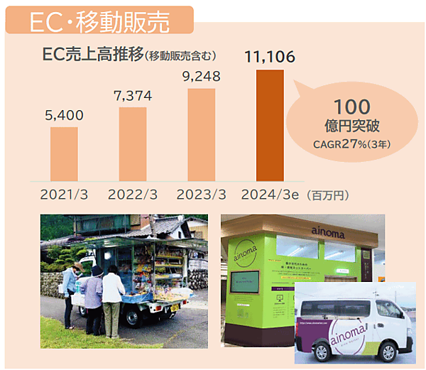 バローグループのEC売上高は2024年3月期で111億600万円。2021年3月期は54億円、2022年3月期が73億7400万円、2023年3月期が92億4800万円と順調に推移している。なおEC売上高は各ECサイト、ネットスーパー、移動販売などを含む。2021年5月に明らかにしていた2023年度(2024年3月期)までの中期経営計画では、2024年3月期のEC売上高100億円を掲げていた。