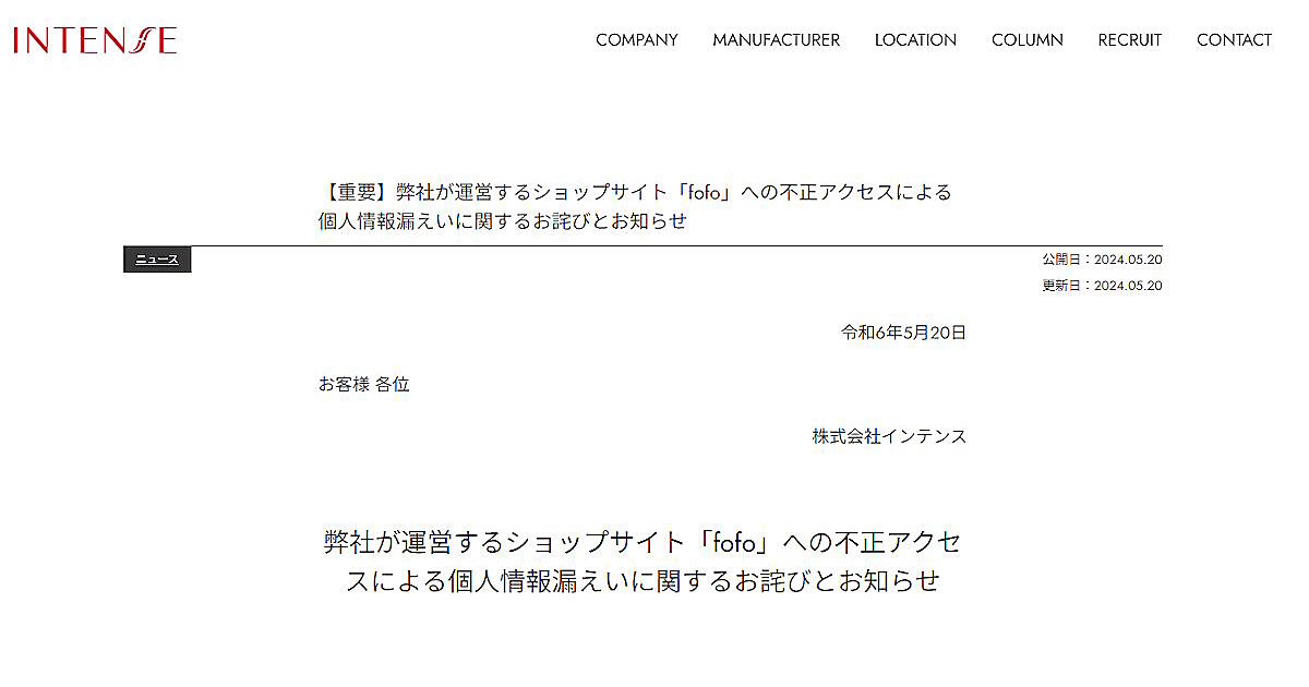 インテンスは調査結果を踏まえ、システムのセキュリティー対策および監視体制を強化、再発防止を図っていく。現在、ECサイトの運用で使うサーバーを完全に停止し、新たなサイト運用に向け対応しているという。改修後の「fofo」運用は決定次第、Webサイト上で告知するとしている。
