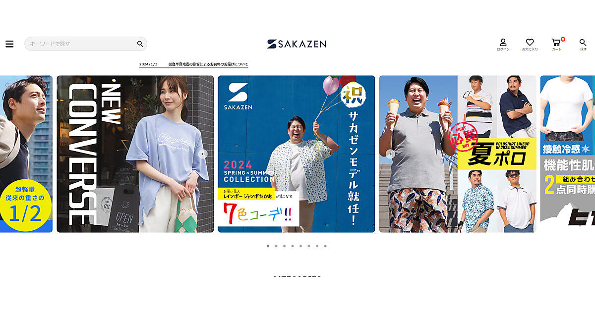 「サカゼン」公式通販サイトでは、普通サイズから大きいサイズのカジュアル・ビジネスまでのアパレル・小物商品や、ヨーロッパから直接買い付けたインポート商品などを取り扱っている。