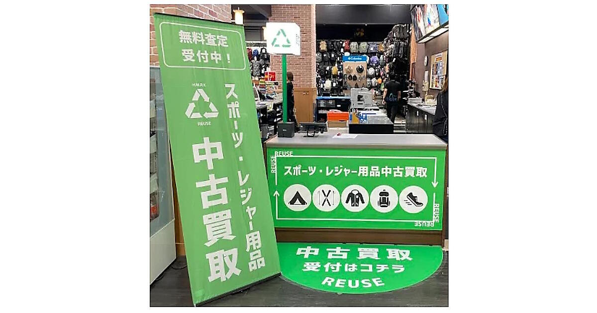 買取対象はアウトドア⽤品、釣り具、登山用品、ゴルフ用品、ウィンター用品、各種スポーツ用品、健康器具など。買取受け付けは都内の葛飾奥戸店、神奈川のサクラス戸塚店で先行実施。6月7日から、岐阜の本館、群馬・高崎店など大型店を含む16店舗で受付をスタート。2024年秋頃までには全店舗に広げる。