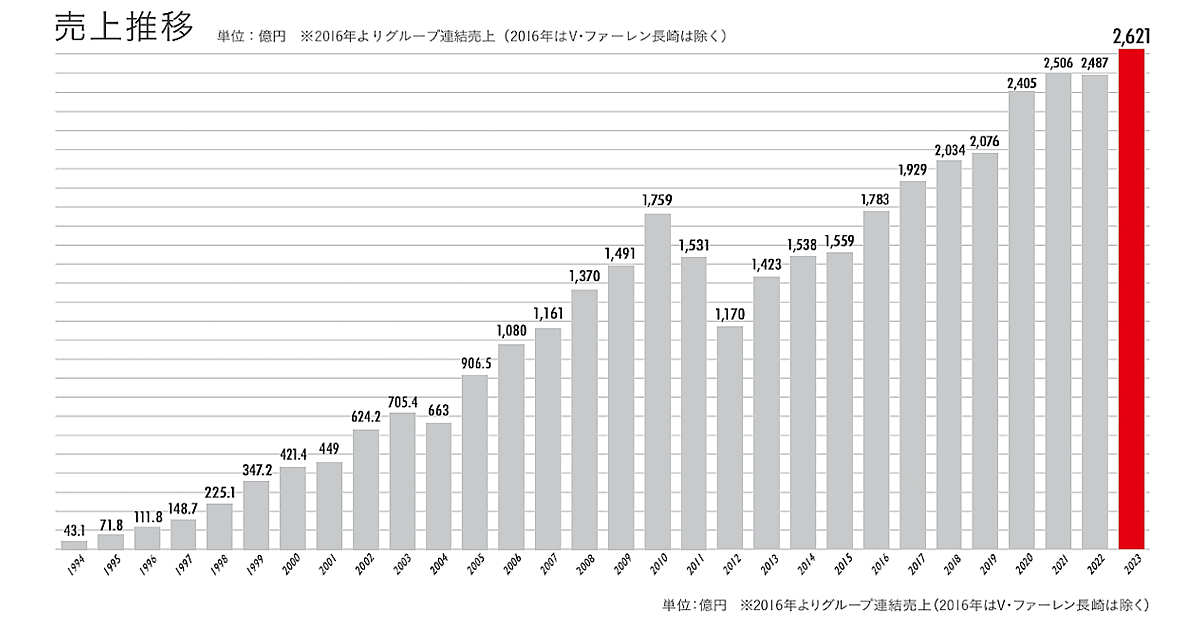 ジャパネットたかたの持ち株会社であるジャパネットホールディングスの2023年12月期連結売上高は、前期比5.4%増の2621億円で過去最高となった。