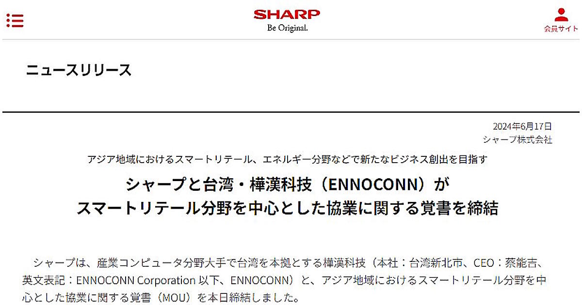 シャープは6月17日、産業コンピュータ分野大手で台湾を本拠とする樺漢科技(ENNOCONN)と、ECに関連するソリューション開発で協業に関する覚書を締結した。