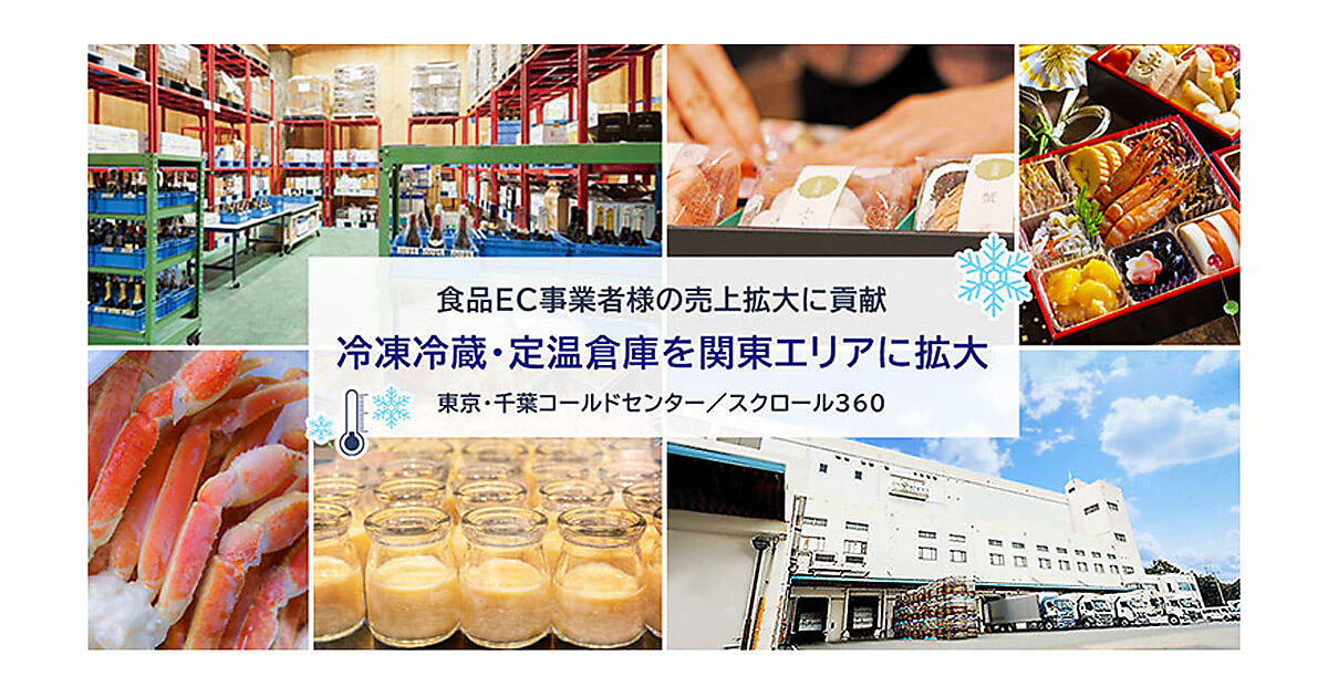 スクロール360は、食品ECに対応した冷凍冷蔵・定温倉庫を関東エリア(東京都・千葉県)に拡大した。