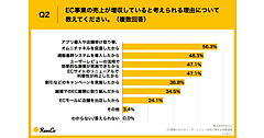 BtoB-ECの実施を検討した理由については、「売上の向上」と「営業効率の向上」がそれぞれ56.1%で最多。それに「顧客のニーズが高いから」が32.7%で続いた。