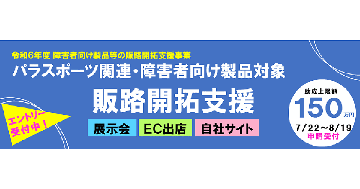 公益財団法人東京都中小企業振興公社は、「障害者向け製品」の製造・販売に取り組む都内の中小企業向けの助成事業「令和6年度 障害者向け製品等の販路開拓支援事業」の事前エントリー受付を開始した。ECモールの出店初期費用や販促費、展示会への出展費用など最大150万円を補助する。