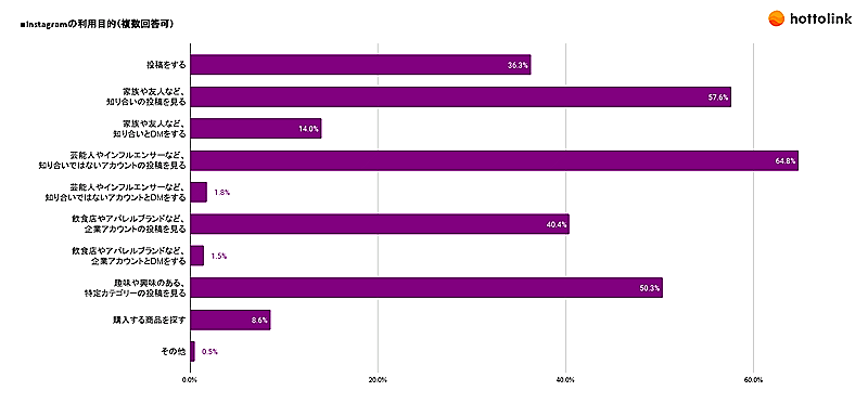 ホットリンクの「Instagramの利用動向に関する調査」は、2024年5月23日~27日にインターネット調査で実施。調査対象はInstagramの利用経験がある20~69歳の男女1000人。