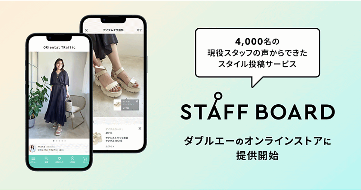 アダストリアは、自社開発したスタイル投稿サービス「STAFF BOARD(スタッフボード)」の外部提供を開始した。7月1日から導入企業1社目となるシューズブランド「ORiental TRaffic(オリエンタルトラフィック)」のダブルエーが運用を開始した。