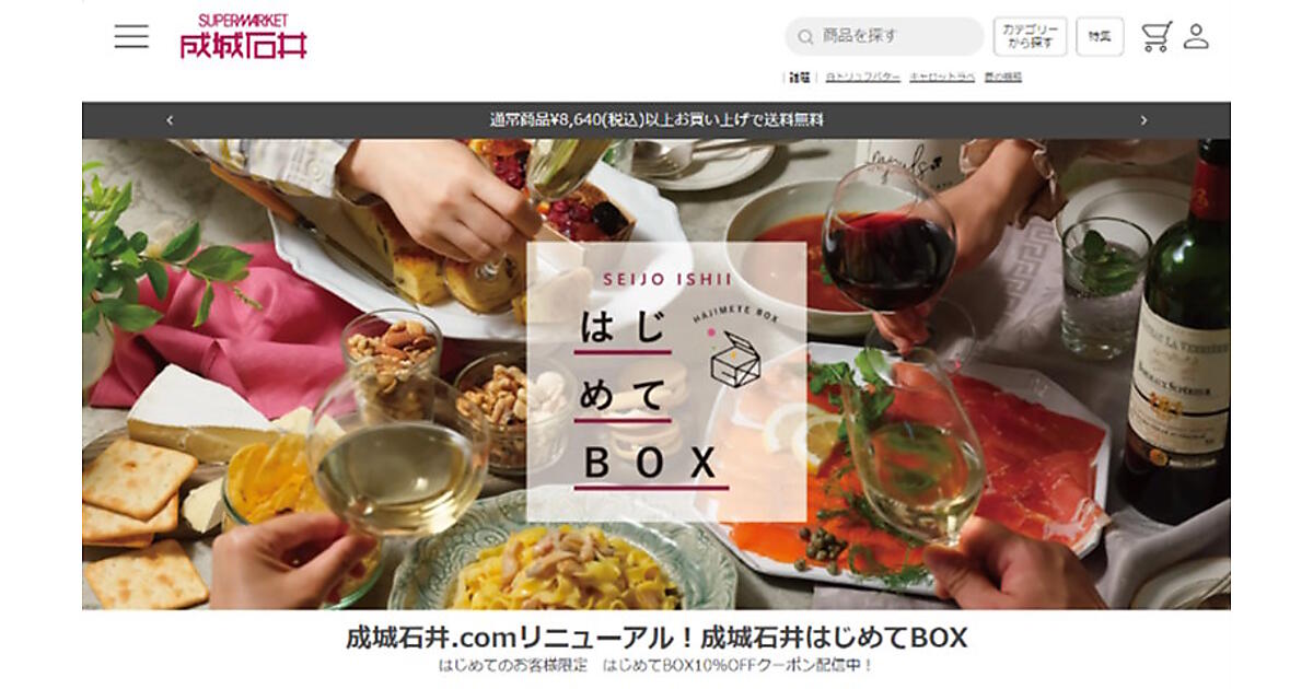 リニューアルに合わせ、取り扱いアイテム総数も大幅拡充。従来の約3700種類から1300種類増やして約5000種類に拡大させた。特に「ワイン」カテゴリーを強化したといい、全800種類をラインアップ。複数のお勧め商品を組み合わせたセット商品のシリーズも追加。「成城石井 はじめてBOX」「SeijoIshii.com GIFTSELECTION」の2種類を「成城石井.com」限定で用意した。