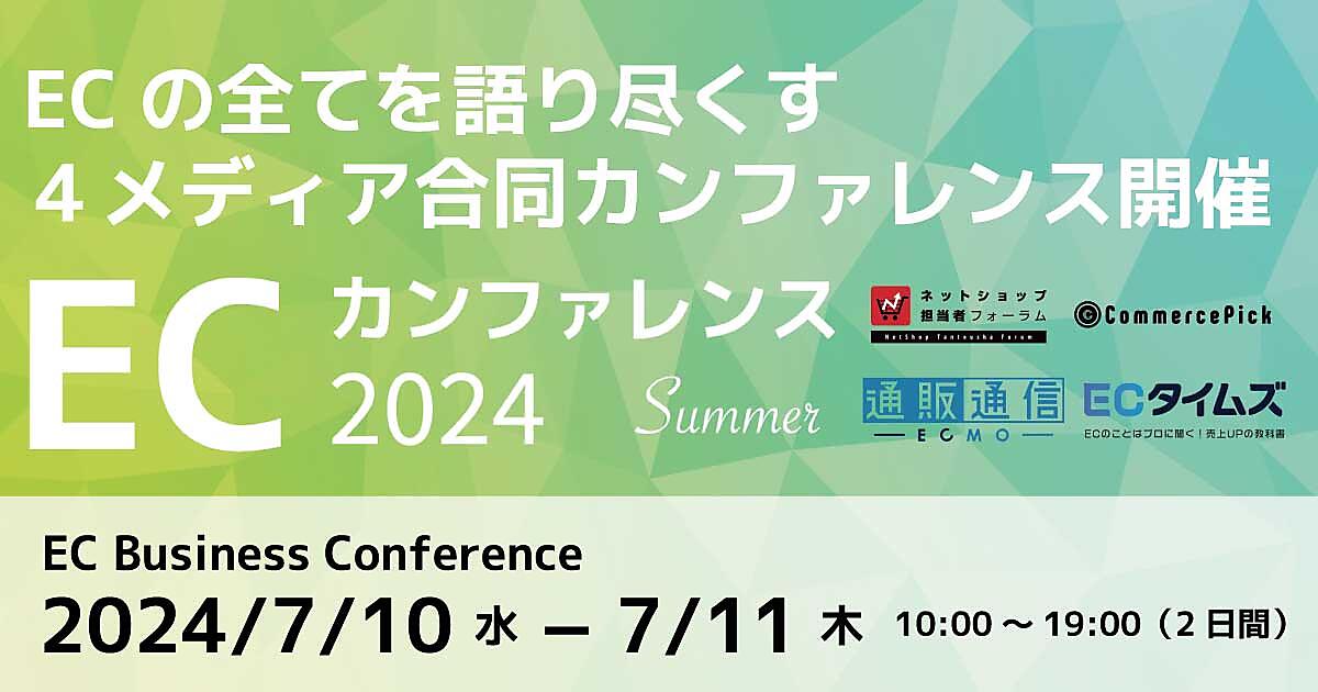 ユニメディアが運営するECメディア『通販通信ECMO』は7月10日(水)と7月11日(木)の2日間、全40講演のEC・通販事業者向けオンラインイベント「ECの全てを語り尽くす2日間『ECカンファレンス2024 Summer』」を開催する。