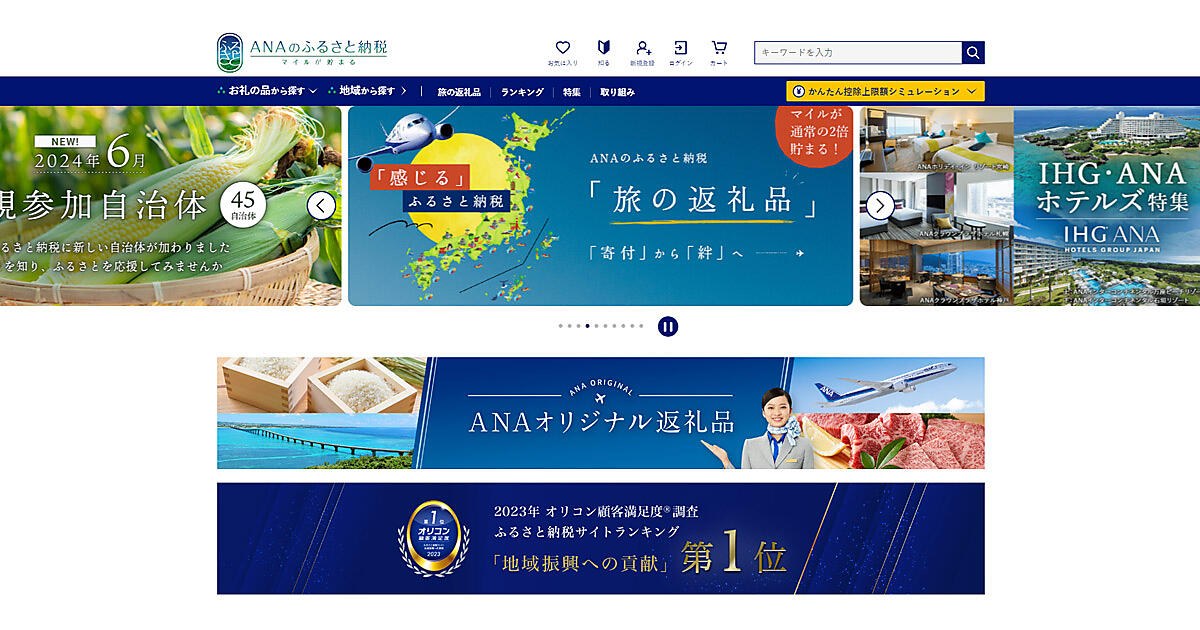 (画像は「ANAのふるさと納税」サイトからキャプチャ)