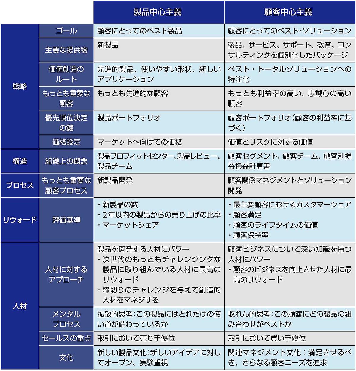 などが、「製品中心主義」と「顧客中心主義」の違いをより鮮明にしていると言えます。