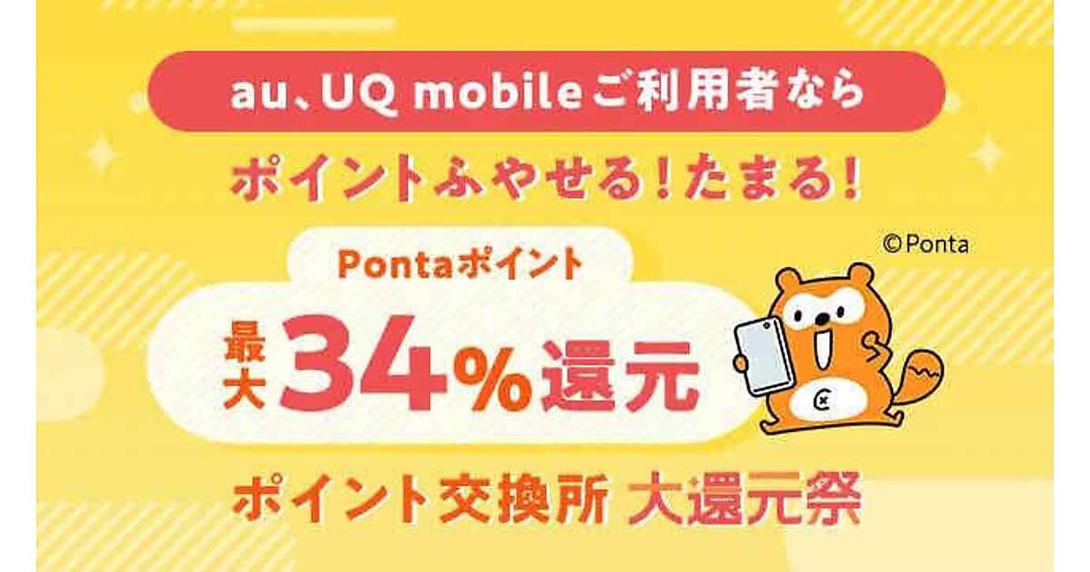 「ポイント交換所 大還元祭」はポイント交換所でポイントを交換し、「au PAY マーケット」で1000円以上の買い物をしたau・UQ mobileの利用顧客とauスマートパスプレミアム会員の顧客を対象に、購入金額の3%のPontaポイント(au PAY マーケット限定)を還元するというもの。今回からau・UQ mobileの利用顧客へ対象を拡大し、買い得感を拡大する。