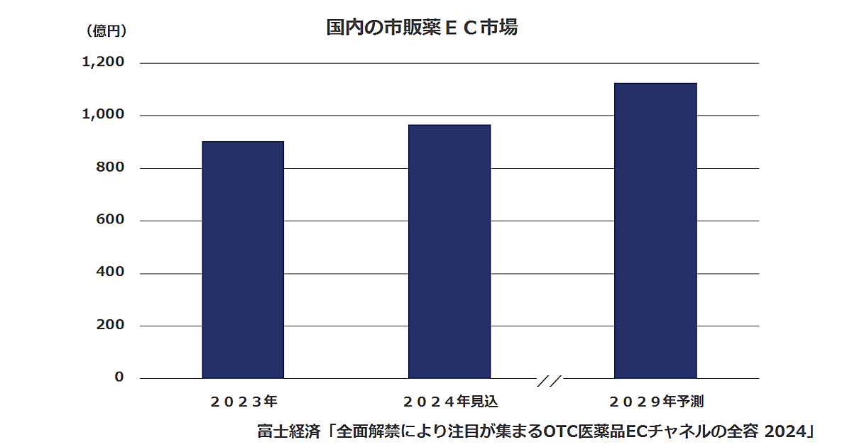 市販薬は2014年6月12日の改正薬事法の施行により、一部を除きネット販売が可能となった。参入メーカーのECサイトやECモール、ドラッグストア・調剤薬局ECサイトなどで販売が広がった。特にECモールでの伸長により市場は拡大している。