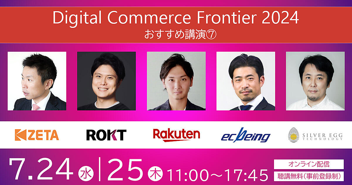 「Digital Commerce Frontier 2024」は、リテールビジネス、BtoC-EC、BtoB-EC、メーカーECなどデジタルコマースに携わる経営者・責任者・担当者に対し、AIやリテールテックなどの最新トレンド、最先端テクノロジー活用、事例、最新ソリューションなどをお届けするイベントです。