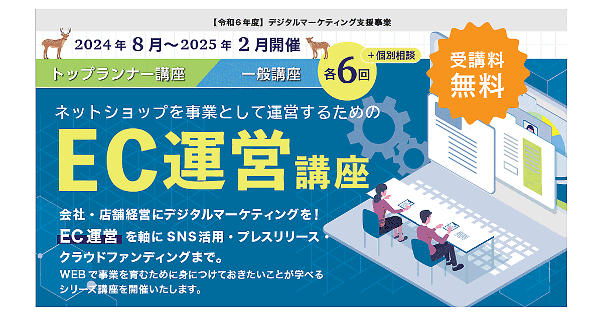 ユウキノインは2024年8月~2025年2月に計6回、奈良県の受講者が無料で受講できる「EC運営講座」を開催する。