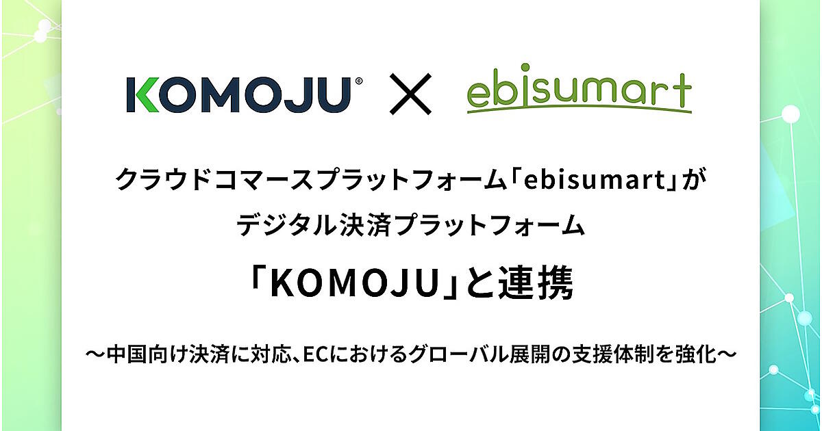 連携内容は、「ebisumart」導入企業向けの越境対応の決済連携。「ebisumart」導入企業は「KOMOJU」利用することで、中華圏を中心に利用が拡大している決済手段「WeChat Pay」「Alipay」を自社ECサイトへ簡単に導入できるようになる。