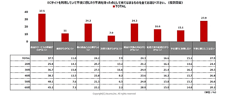EC利用時の不満点、トップは「商品やサービスの詳細がわかりにくい」