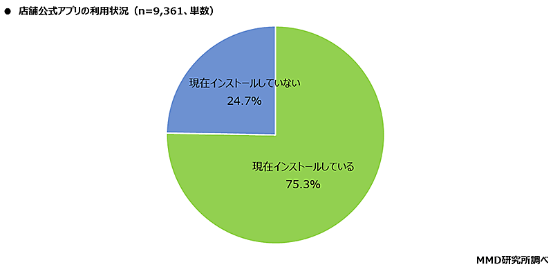 調査対象者のうち、スマートフォンを所有しているユーザーに店舗公式アプリの利用状況を聞いたところ、75.3%が「現在インストールしている」と回答した。