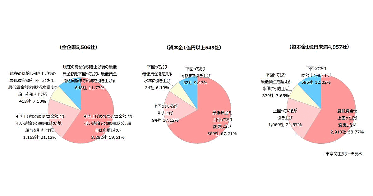 厚生労働省の中央最低賃金審議会が2024年度の地域別最低賃金額改定の目安額を前年度から50円の引き上げを答申したことについて、東京商工リサーチは最低賃金引き上げに関するアンケート踏査を実施、その結果を発表した。