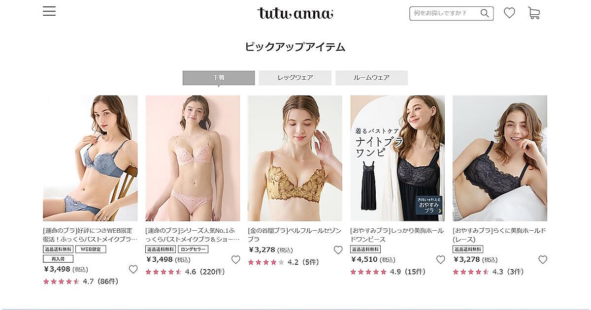 女性用靴下・下着を販売するチュチュアンナでは、ネット販売売上高が順調に伸びている。顧客理解を徹底してLTVの向上を図り、また、「チュチュアンナ」公式アプリの利用促進や日々の改修・改善に注力することでアプリ経由のEC売り上げを伸ばしているという。