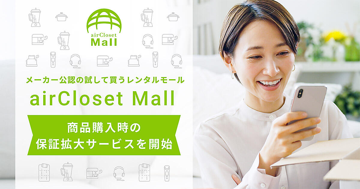 エアークローゼットはWarranty technologyと連携し、メーカー公認の月額制レンタルモール「airCloset Mall(エアクロモール)」において、商品購入時の保証拡大サービスを開始する。