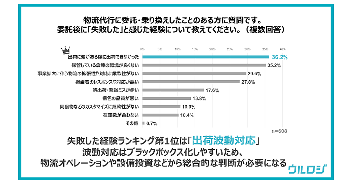 物流代行業者への委託、失敗経験は「出荷波動対応できない」が最多