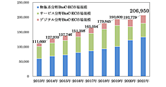BtoB-EC市場規模の業種別内訳を見ると、市場規模が最も大きいのは「卸売」で121兆2499億円(前年比7.4%増)。「輸送用機械」が73兆5495億円(同24.9%増)、「繊維・日用品・化学」が45兆1456億円(同0.9%増)、「電気・情報関連機器」が45兆1318億円(同0.2%増)で続いた。