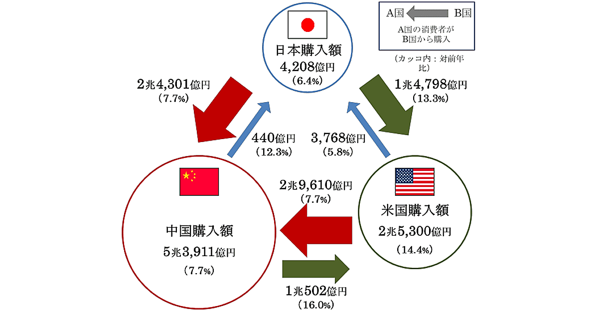 内訳は米国向け越境ECが同13.3%増となる1兆4798億円、中国向けが同7.7%増の2兆4301億円。