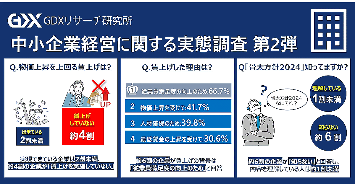 フォーバルGDXリサーチ研究所は「中小企業経営に関する実態調査」を実施、中小企業の賃上げ実態について調査し、その結果を発表した。