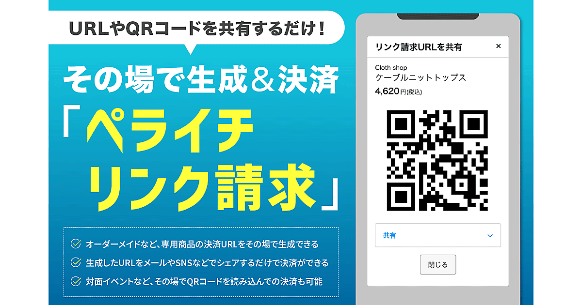 ペライチは、エンドユーザーが商品・サービスをその場で登録し、専用の決済リンクを発行できる決済サービス「ペライチリンク請求」の提供を開始した。