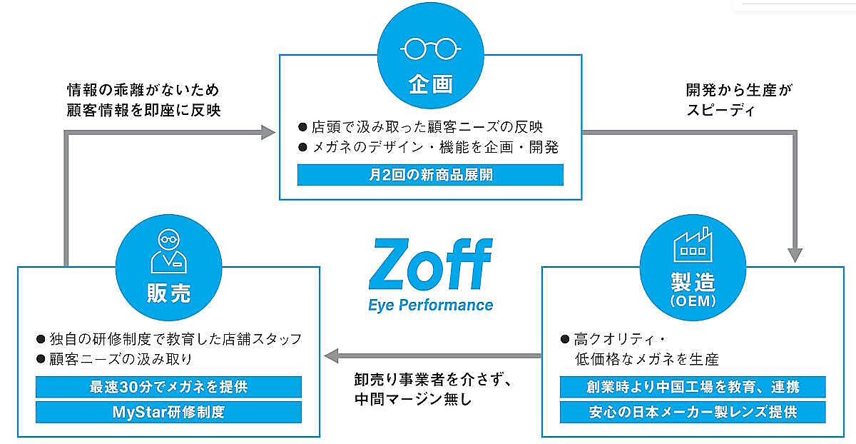 インターメスティックは、眼鏡の企画、製造、マーケティング、販売を手がけるSPA(製造小売業)型のビジネスモデルを展開。中間コストを省いた低価格な眼鏡を販売している。