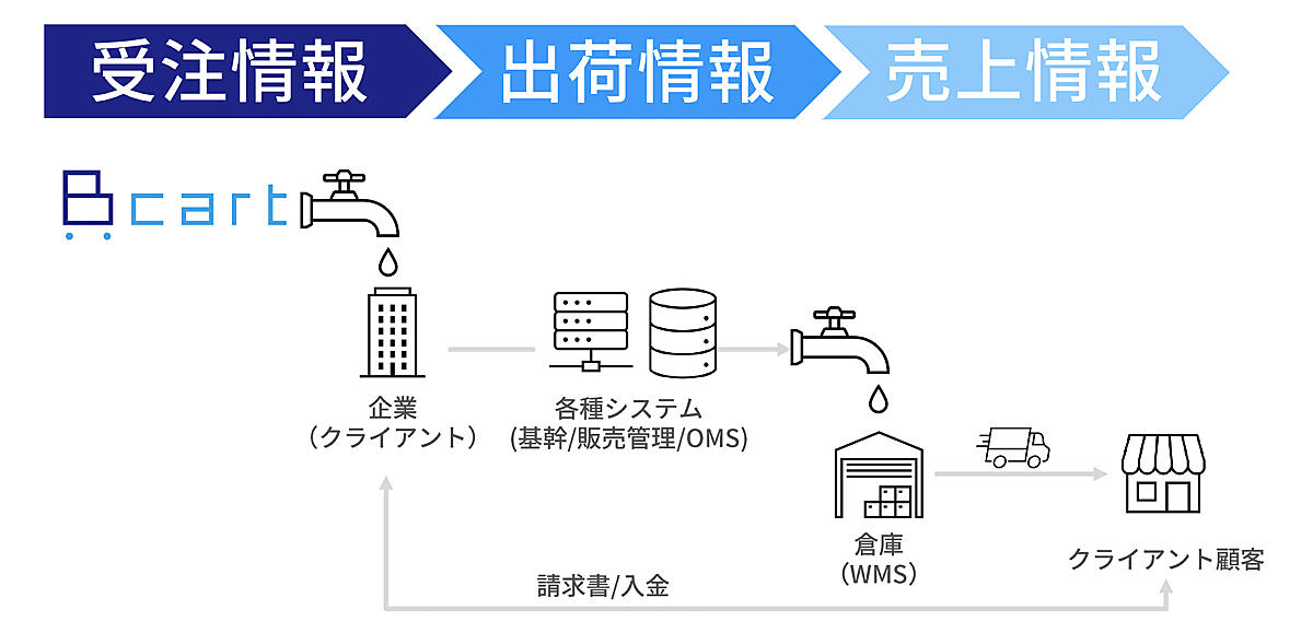 しかし「Bカート」導入後は、受注データはAPI連携した新しい販売管理システムを通して自動的に倉庫へ流れていく。不要なデータの手入力や伝票の出力がなくなった。