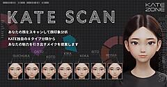 ユーザーの顔をスキャンして顔の印象を分析し、似合うメイクや眉の形、印象チェンジをねらうメイクを提案する。さらに、なりたいメイクの画像から「KATE」の製品を提案することもできる。