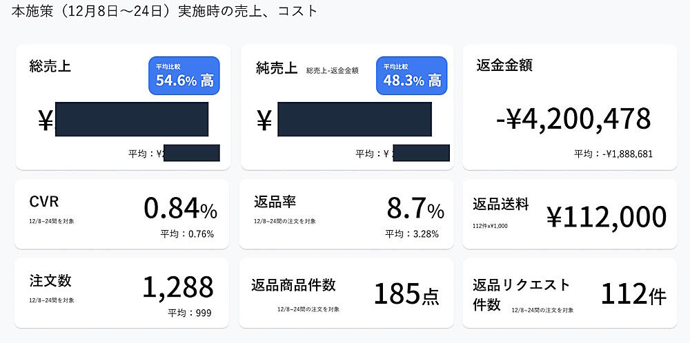 キャンペーン実施期間の返品送料はすべてPLAY PRODUCT STUDIOが負担した。こうしたコストを差し引いても、顧客からの反響は大きく、顧客のなかでもロイヤルティの高い顧客からの反響が特に良かった。