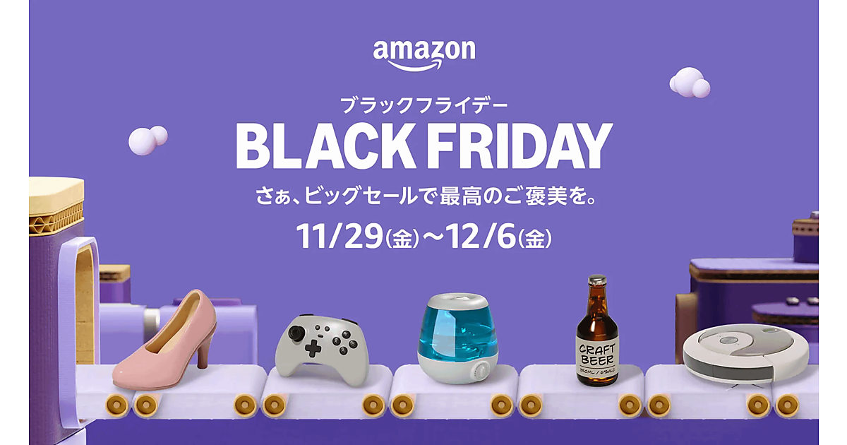 アマゾンジャパンは11月29日から12月6日まで、ビッグセール「Amazon ブラックフライデー」を実施する。期間は11月29日0時~12月6日23時59分までの8日間。Amazonならではの幅広い商品を魅力的な特別価格で提供するとしている。