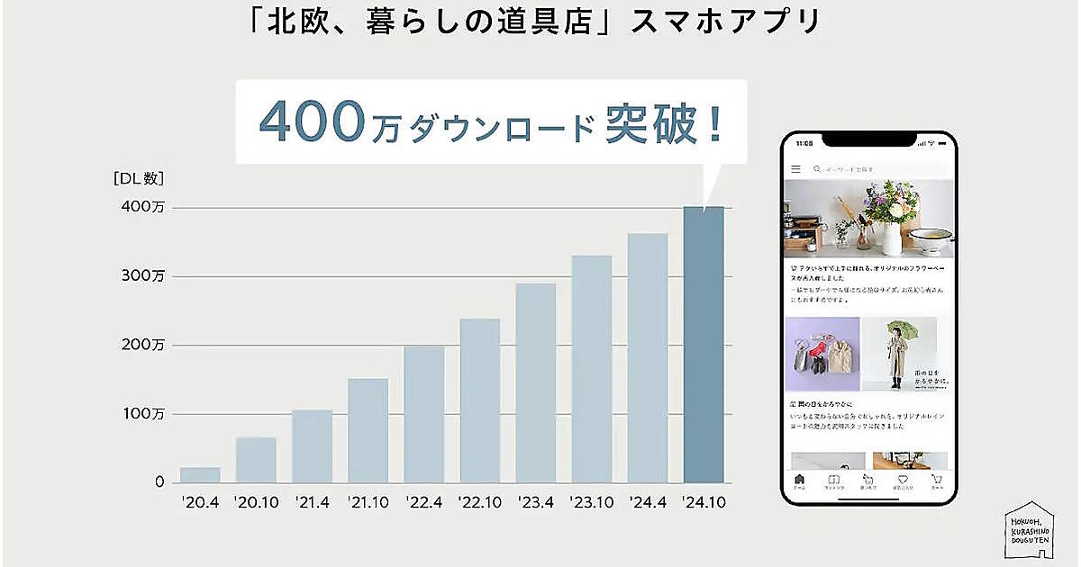 クラシコムは11月19日、ECサイト「北欧、暮らしの道具店」のスマホアプリが10月で累計400万ダウンロード(DL)を突破したと発表した。