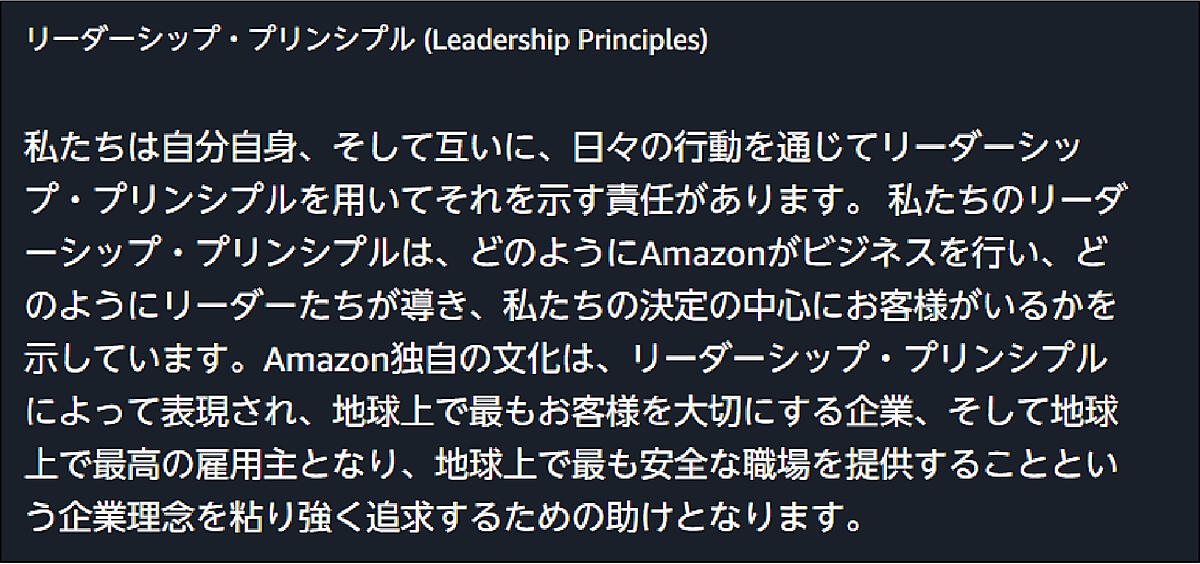 「Leadership Principles」の最初の項目にある“Customer Obsession(何よりもお客さまを中心に考える)”も、言葉だけではなく活動の隅々まで浸透していると感じます。