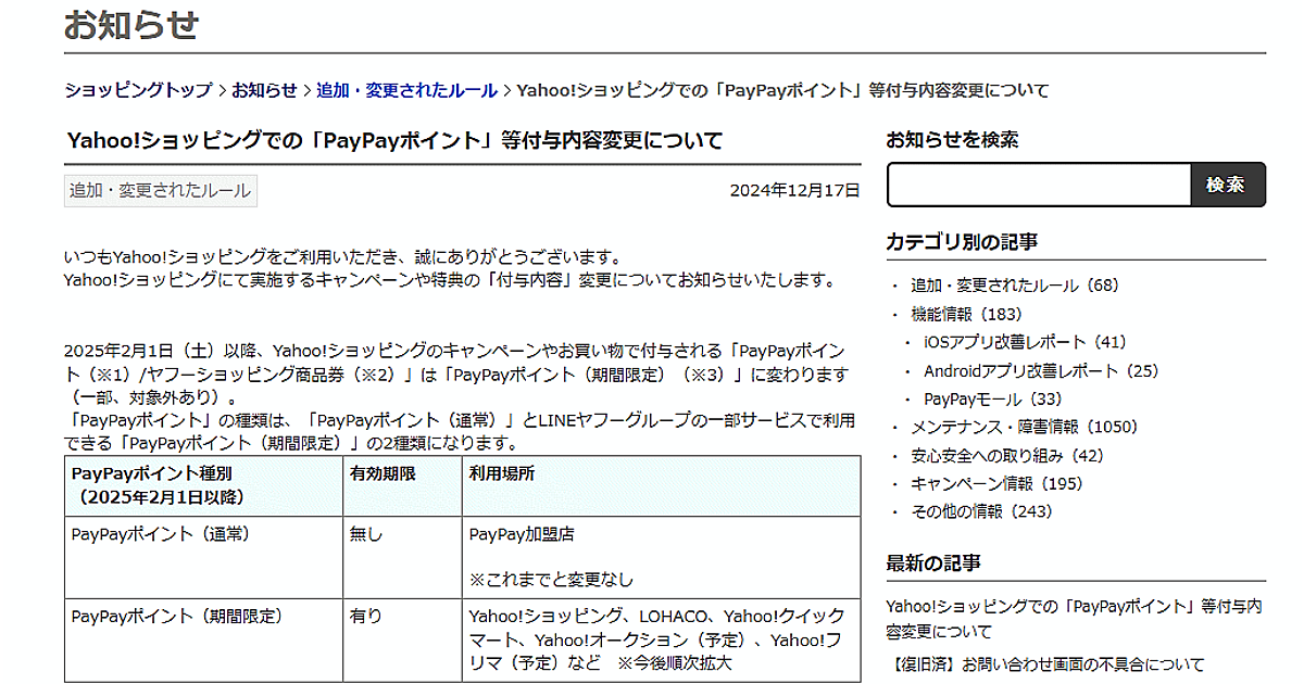 LINEヤフーは2025年2月1日から、「Yahoo!ショッピング」のキャンペーンや特典で付与している「PayPayポイント/ヤフーショッピング商品券」を、「PayPayポイント(期間限定)」に変更する。