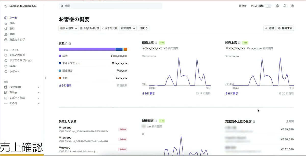 ダッシュボードで顧客の決済を見える化