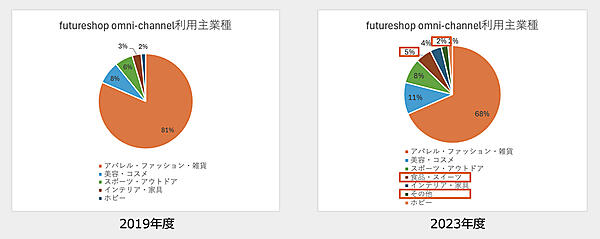 こうしたニーズに応えるために開発したのが「futureshop omni-channel」だ。サービスとしての柱は、実店舗とECのポイント制度を共通化する機能だ。すでに130のブランド、2474の実店舗が活用しているという(2024年6月時点)。コロナ禍をきっかけに導入数が一気に増え、利用傾向にも変化があった。