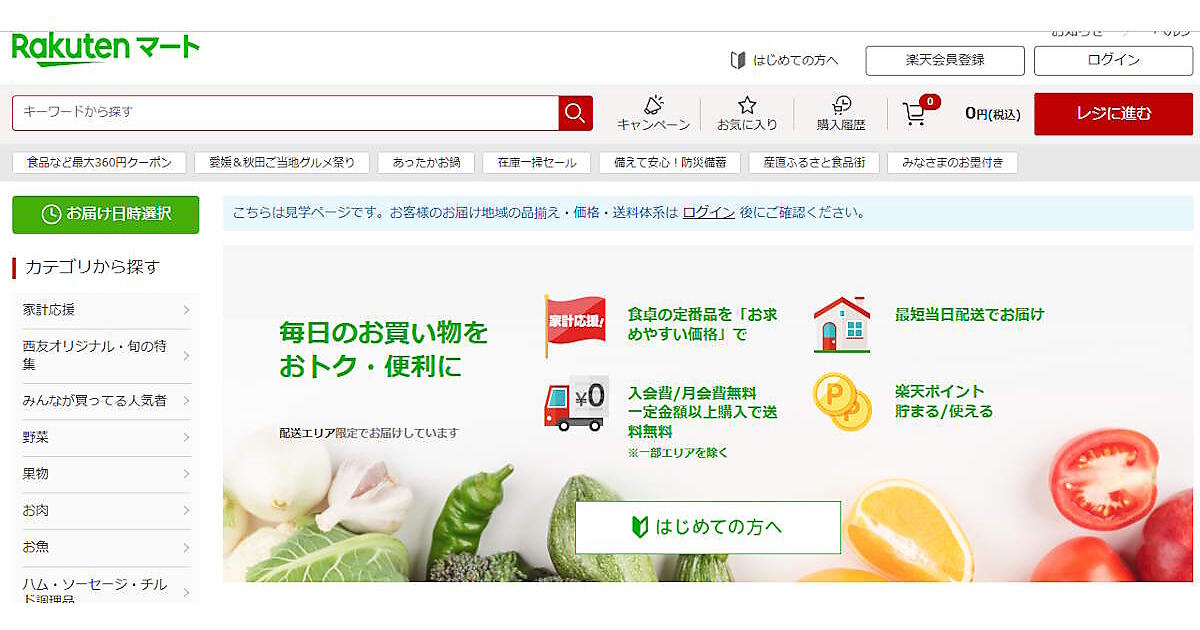 楽天グループで倉庫型ネットスーパー事業「楽天マート」を運営する楽天マートは1月6日から、「楽天マート」の配送エリアを順次拡大する。